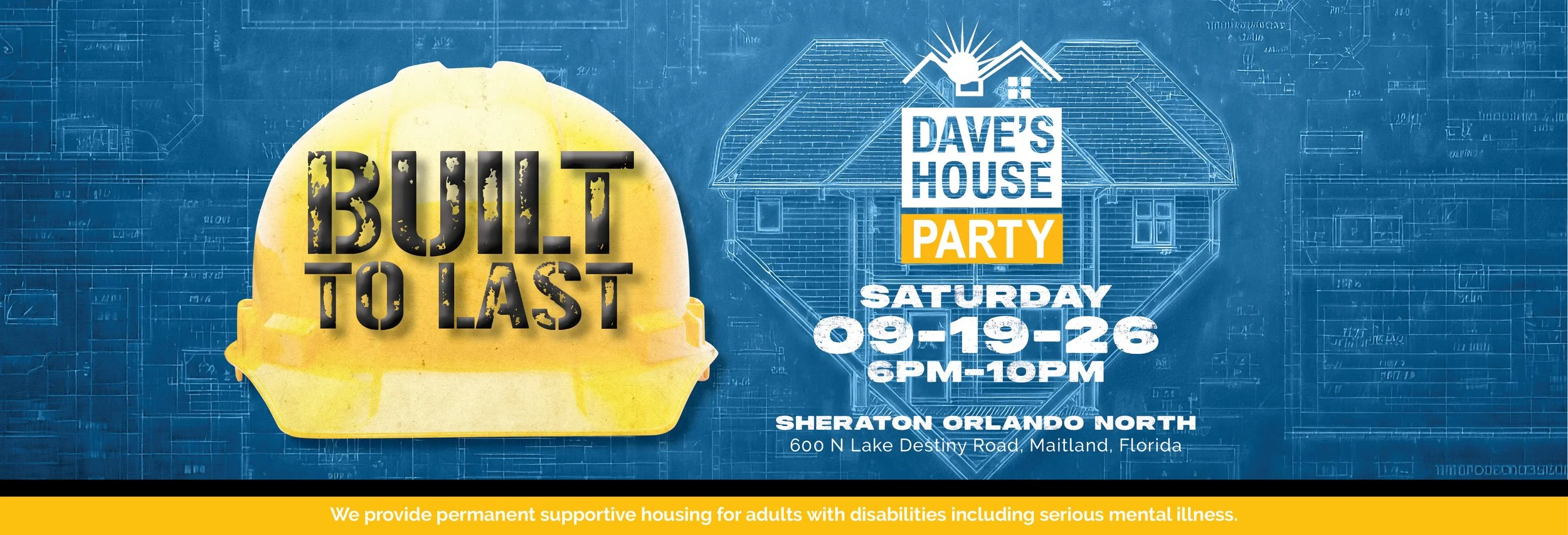For over 16 years, Dave’s House has been dedicated to its mission of ending homelessness for adults with serious mental illness—providing permanent housing, mental health support, and a path to stability. With our six homes in Orange County, we’ve seen firsthand the power of safe, permanent supportive housing to transform lives. Now, we’re expanding that impact with the creation of our first multi-unit Residential Community in Central Florida. Our annual fundraising event “Dave’s House Party” fuels this mission.
